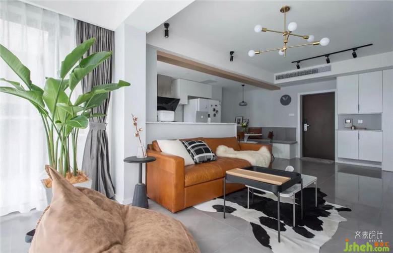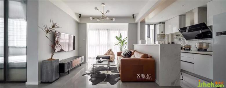 客廳處將廚房墻推倒,陽(yáng)臺(tái)內(nèi)包,原本規(guī)整局促的客廳就開闊許多??蛷d望向沙發(fā)、吧臺(tái)、櫥柜,視覺錯(cuò)落,層次分明。