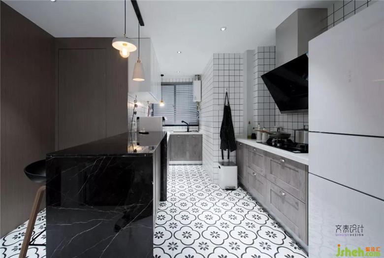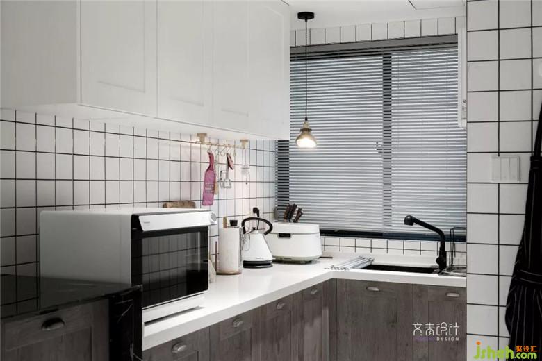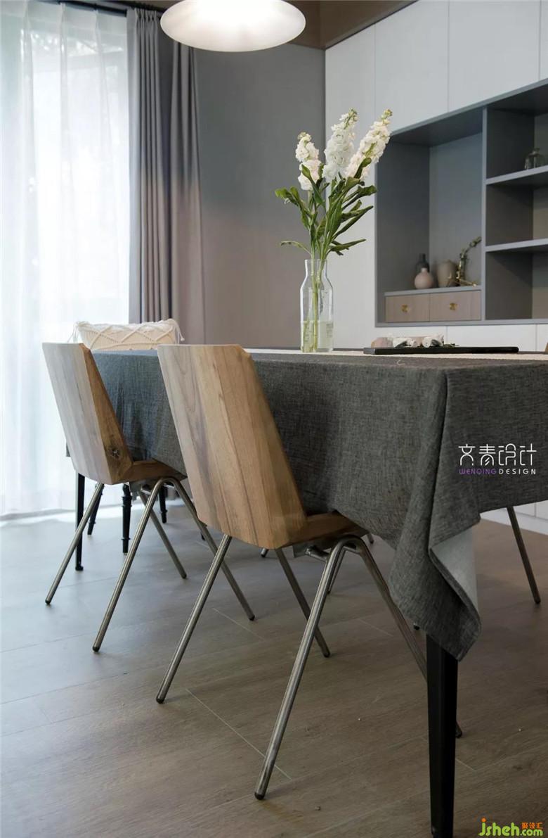 餐廳一側(cè)做大塊面的開放柜,擺上用餐佐料,餐具,小裝飾品,就是繽紛的小景。所以避免視野過亂,燈具選擇取向就得簡單。