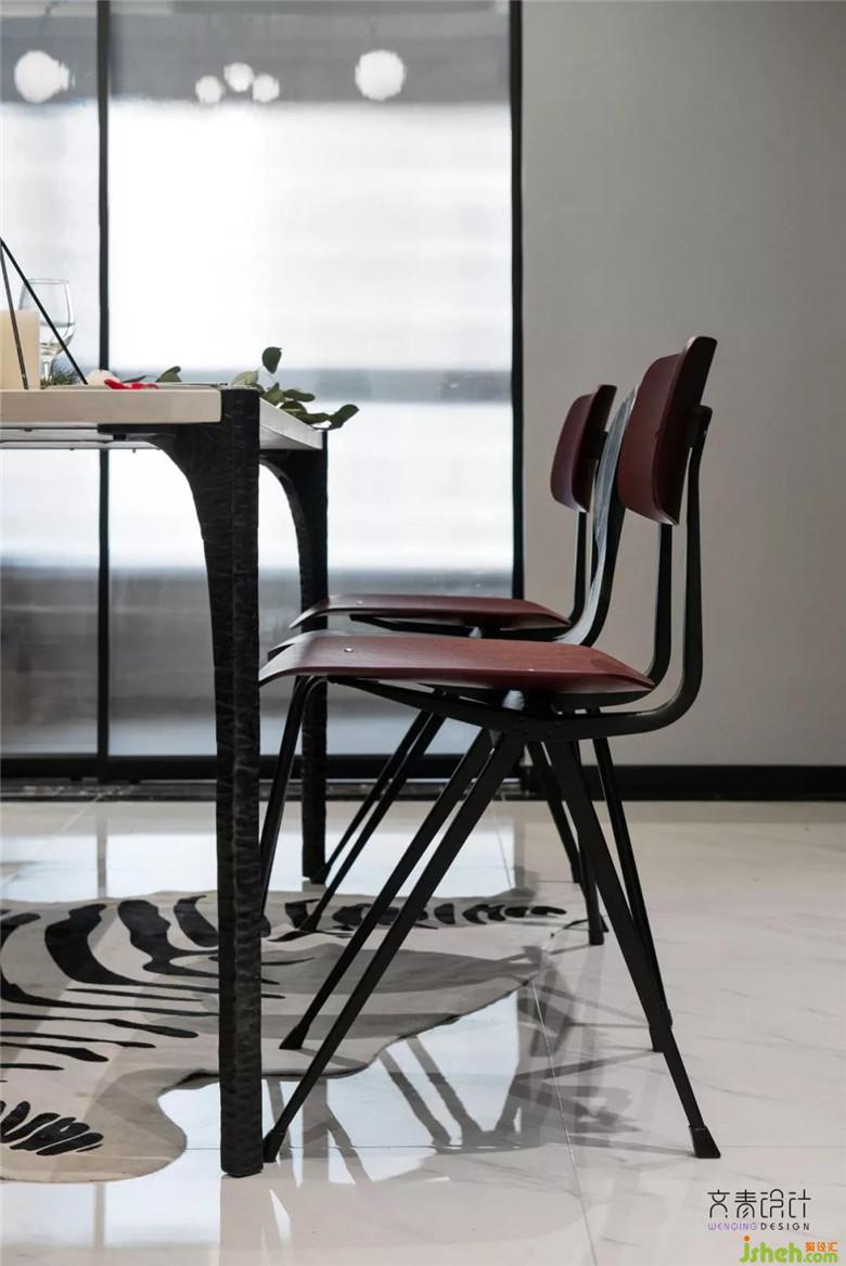 輕工業(yè)風的餐桌椅組合。甲魚說,這樣的白餐桌怕壓不住家的氣場。(被紅木家具審美入侵的軟妹子)設(shè)計師沒少給她灌輸,“年輕人應該大膽嘗試!”還好,把她掰彎了!