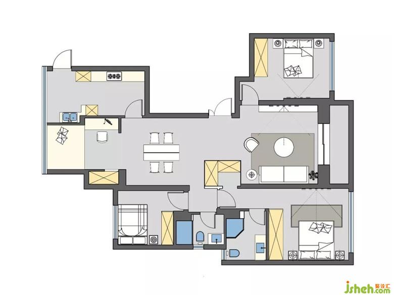 看完客餐廳跳躍的醬系色彩后,臥室們原木和暖灰兩種色調(diào)的色彩搭配顯得很鹽系。不過度修飾,利落干凈。