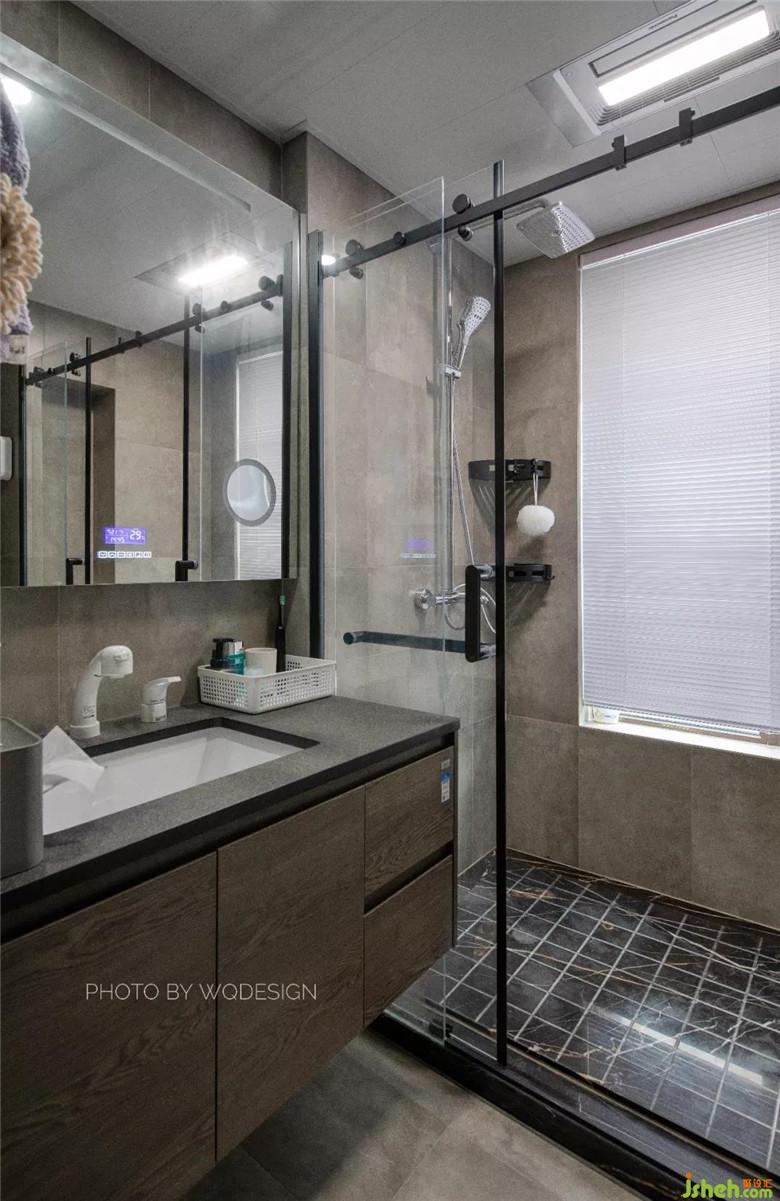主臥內(nèi)衛(wèi)的空間在改變主臥朝向后,空出部分空間做出了一個開放式衣帽間。#臺盆柜做出懸空感,方便打理,視覺效果也更好。裝修公司