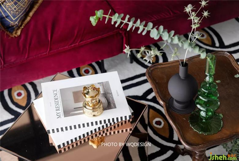 業(yè)主是非常不喜歡網(wǎng)紅爆款家具的。很多家具都是她照著設(shè)計師給的圖樣風格,自己花了比較多的功夫去淘的。就比如上圖的方形小凳,這是她在西班牙路邊的一家古著家具店淘到,同時地毯和抱枕也都選用了較為復古的款式和紋路。