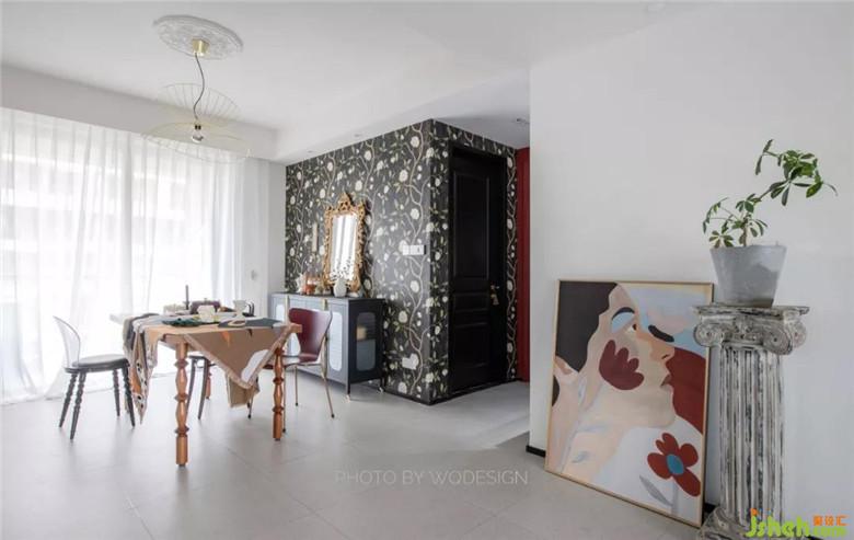 復古的印花墻紙來自英國海淘,花了很多心思,最終也成為了餐廳的亮點。