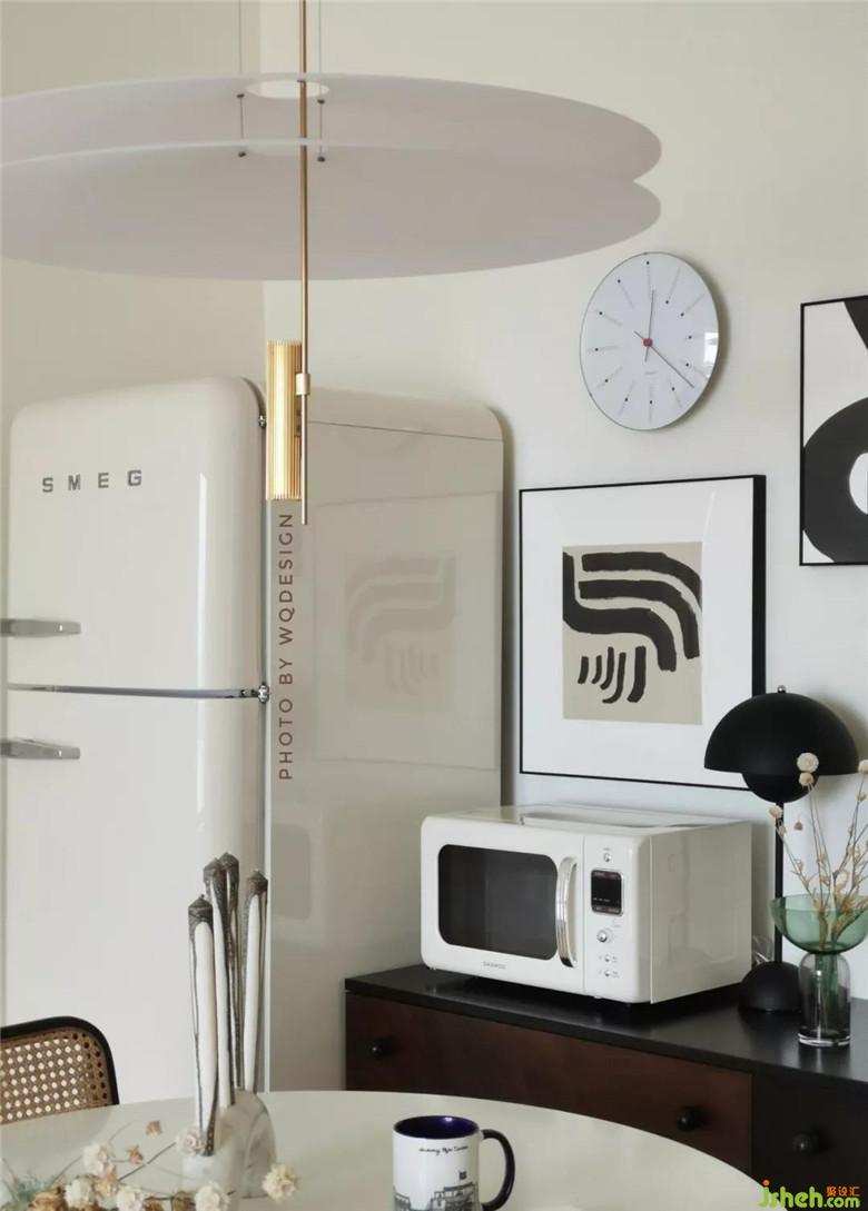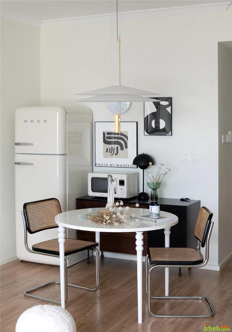 這個(gè)餐桌還有一段故事。桌角是從設(shè)計(jì)師國(guó)外淘回來(lái)的,之后再找廠家核對(duì)白色號(hào),訂制桌板,組裝。這款中外混血的餐桌,成本就只用大兩千。這樣的過(guò)程,十分有趣。