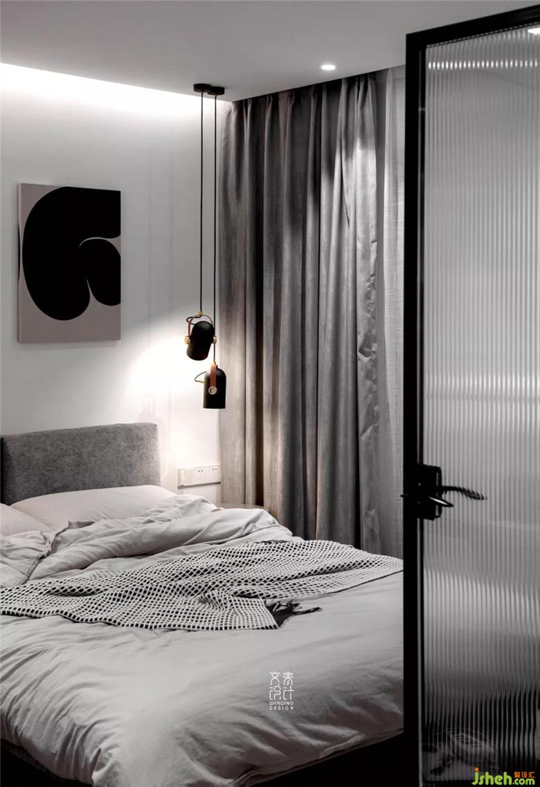 女業(yè)主習(xí)慣在臥室化妝,在主臥有限的空間里,再騰出一個(gè)桌位比較困難,因而在主臥進(jìn)門處定制出一個(gè)斜桌用作梳妝臺(tái),其插入衣柜的設(shè)計(jì)也稍顯新意。