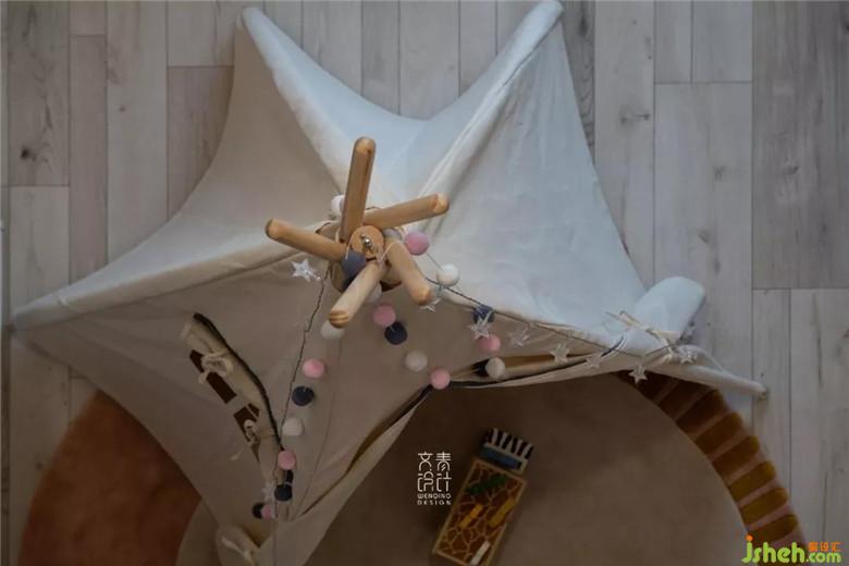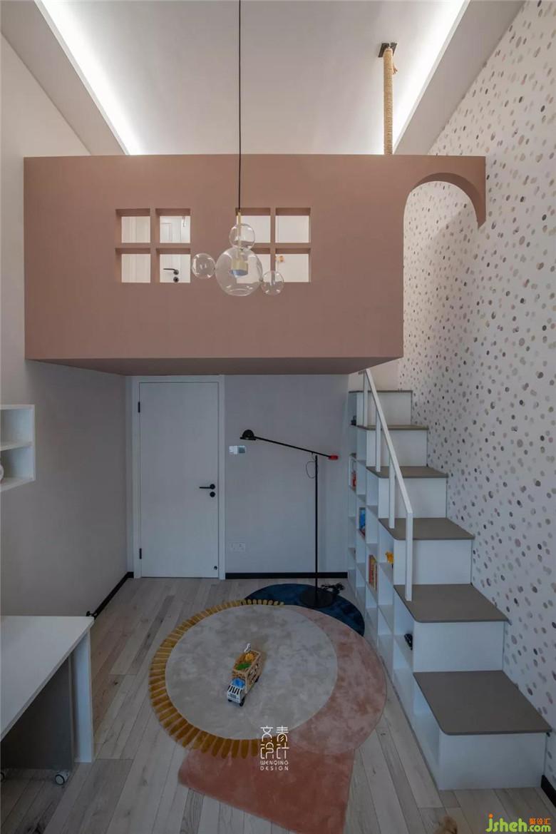 如童話(huà)般,兒童房從平面化為立體后,床鋪的位置移至二層,二層的公用衛(wèi)生間在平日沒(méi)客人的時(shí)候也成了她的專(zhuān)屬。