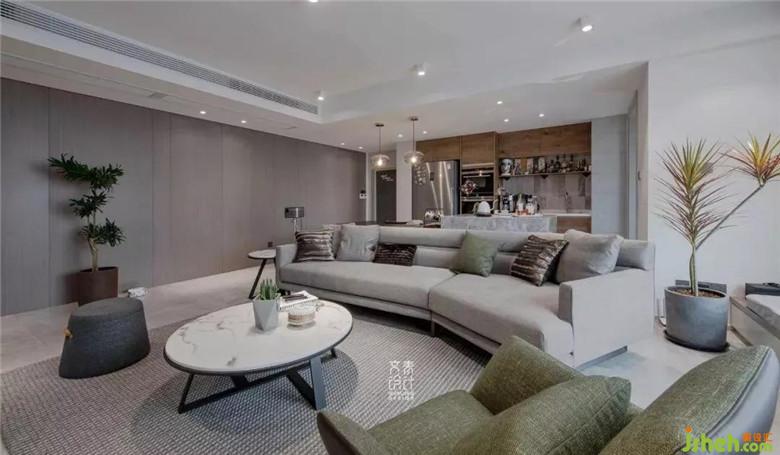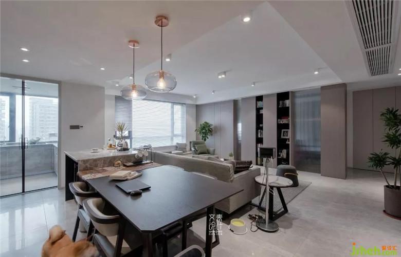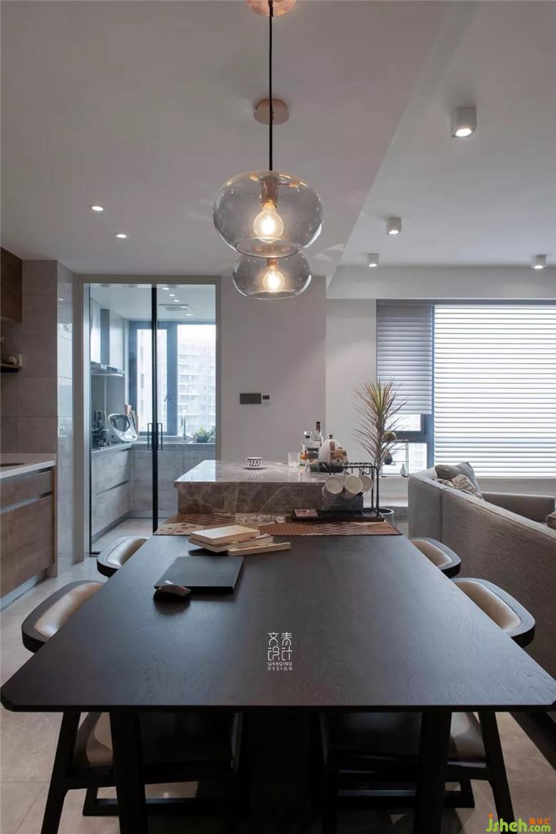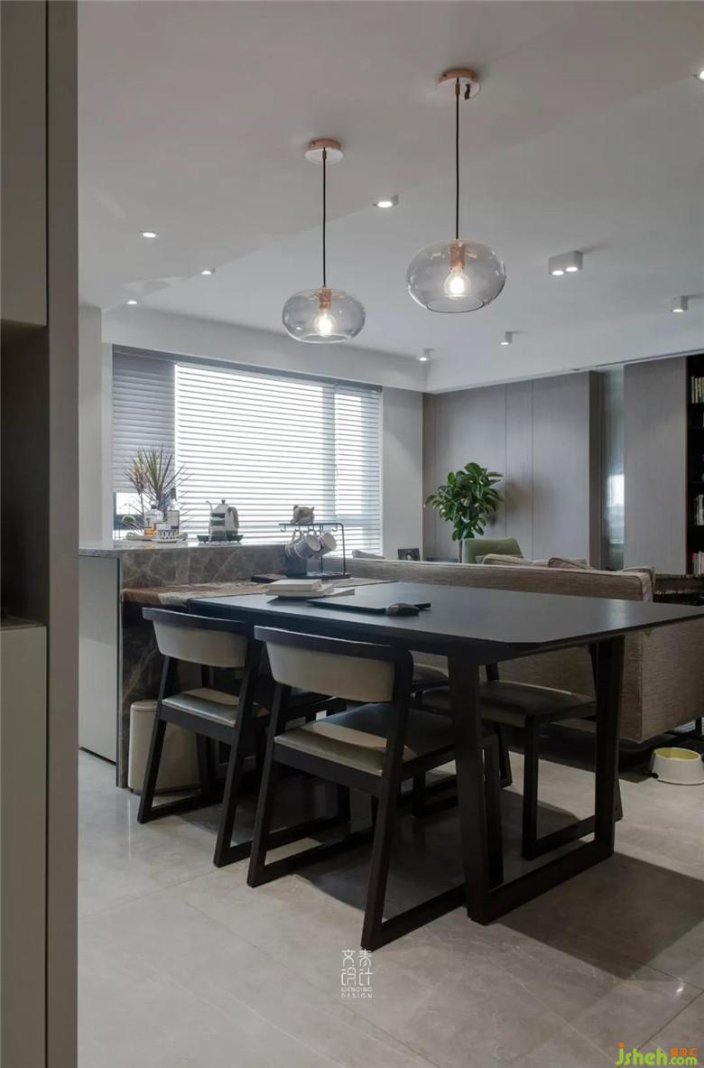 裝修公司對(duì)餐桌椅的高度和沙發(fā)單椅的體量控制下,客餐廳的交互絲毫不會(huì)有干擾。
