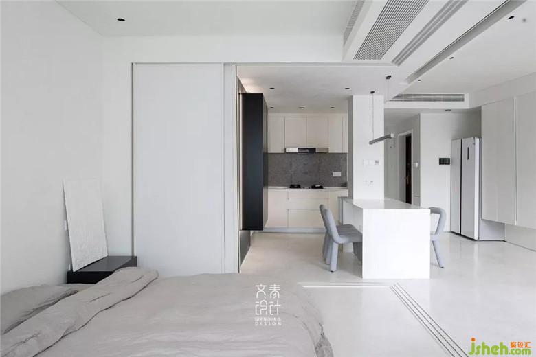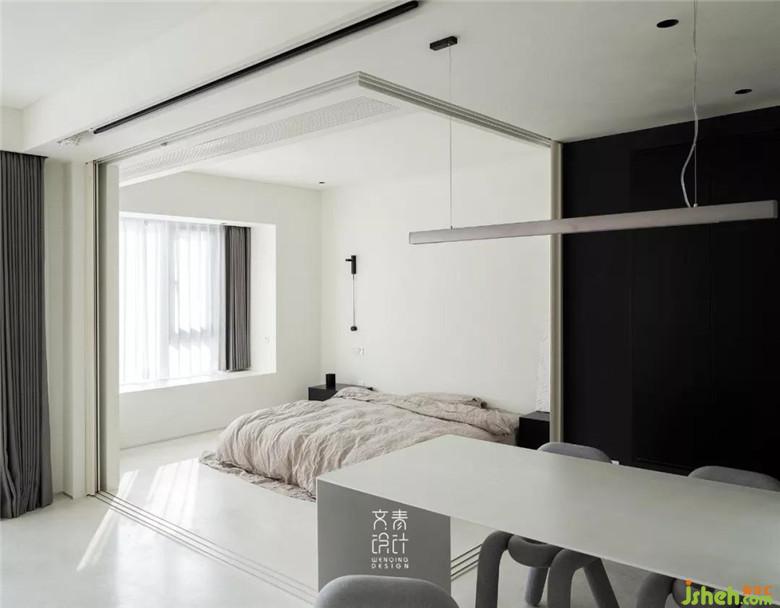 主臥作為休憩的地方,雖然兩面的墻體都被推掉做成了敞開的大空間,但裝修公司為了隱私性,增設(shè)的移門保證了場景的隱私性。
