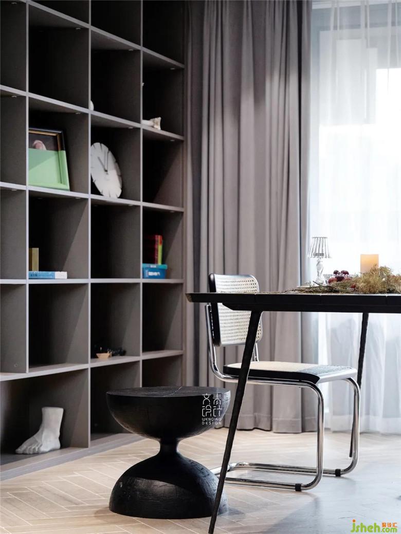 走進客廳你會發(fā)現(xiàn),這似乎有更像書房,“頂天立地”的柜子只要擺上幾本藏書,客廳搖身一變就成了休閑辦公的書房,這就是業(yè)主最喜歡的生活方式。