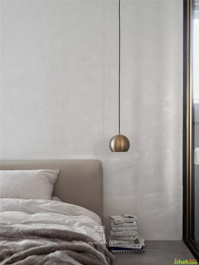 與公共區(qū)域不同的,主臥作為休憩的地方,色彩和材質(zhì)都溫和許多。房內(nèi)唯一的顏色就是海藍,這樣的色彩給予人以靜謐和曠達的心情。