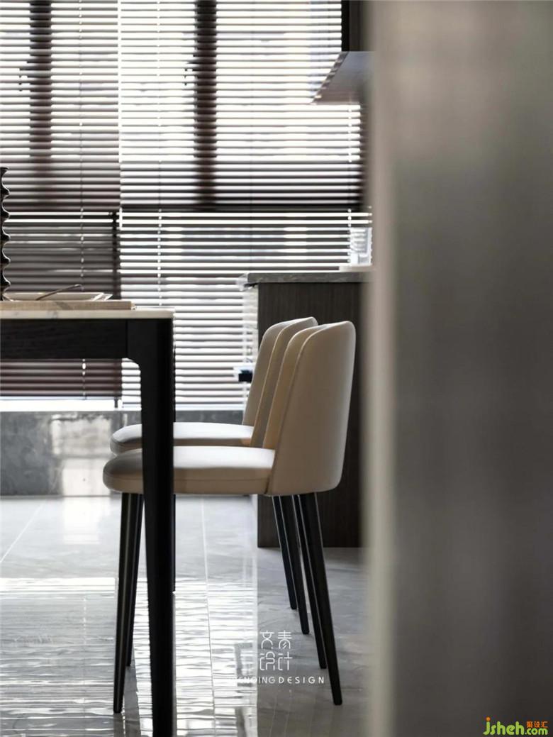餐廳也有標配的陽臺,本著不浪費每一寸自然光的原則,裝修公司采用了有著“光影魔術(shù)手”之稱的百葉簾,業(yè)主有時會在餐桌上辦公,陽臺的矮柜就成了“辦公區(qū)”最好的水吧臺。