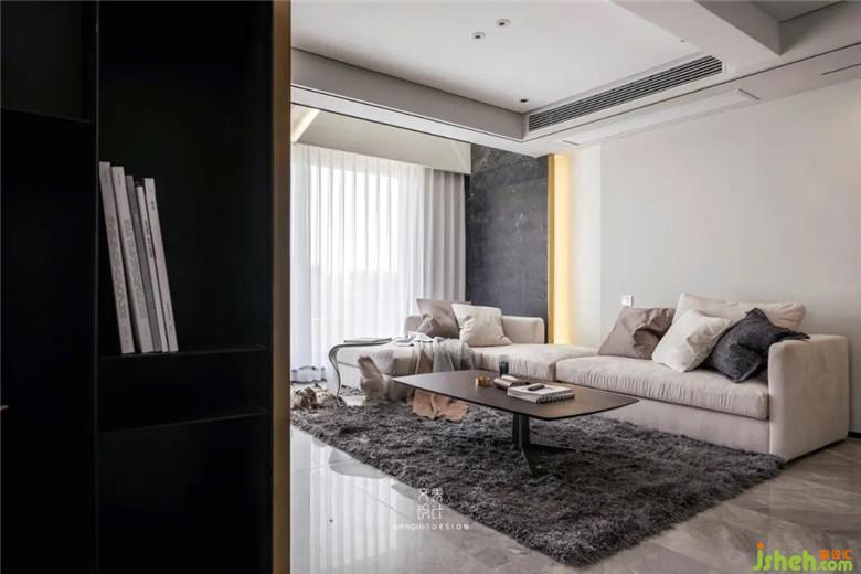 原戶型的層高不是很高,為了生活的舒適性又裝了地暖,這導(dǎo)致層高進(jìn)一步被壓縮,所以裝修公司在沙發(fā)的選擇上選擇了較為低矮的款式,這樣從視覺上能拉高空間。