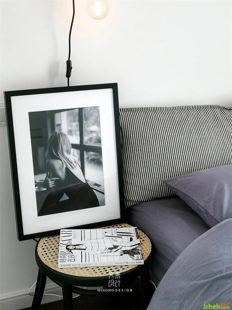 次臥裝修公司用藤編的單椅代替床頭柜,顏值和功能都很在線。