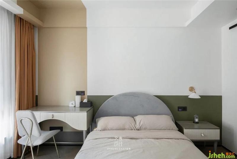 素雅的色調(diào)自然流淌于臥室空間,幾何色塊的組合碰撞,杭州裝修設(shè)計(jì)展現(xiàn)安寧與趣味并存的臥室空間。