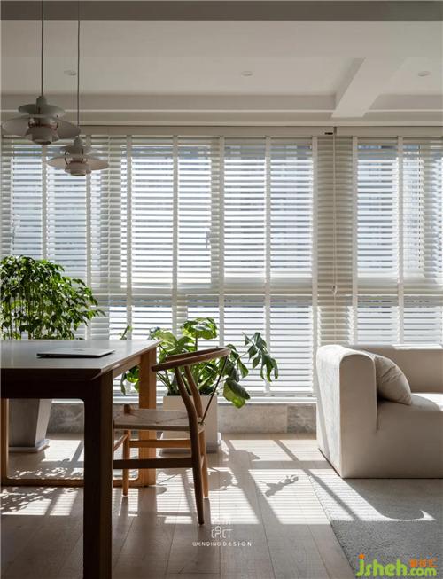 一桌兩椅妥妥滿足單人soho需求,當(dāng)辦公疲倦時(shí)也能欣賞下書(shū)桌旁的綠植角,舒緩眼睛放松心情。