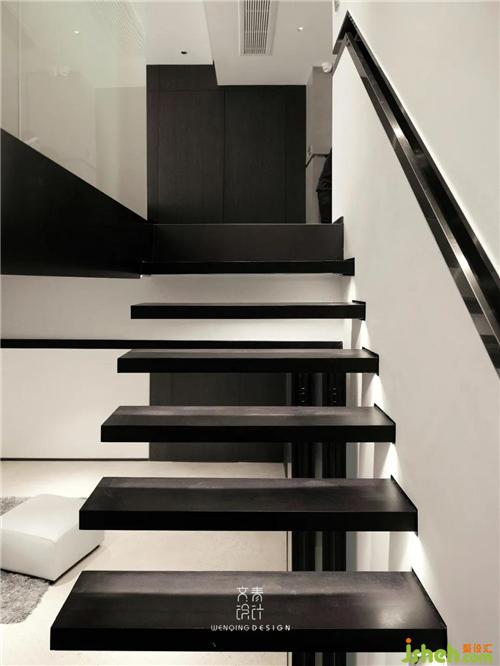 通往地下室的樓梯采用懸浮式設計,懸浮在半空的樓梯宛如一件精致的藝術(shù)品,內(nèi)嵌暗藏式扶手、輕盈的踏步結(jié)構(gòu),既能節(jié)省空間,還能起到裝飾效果杭州裝修設計。