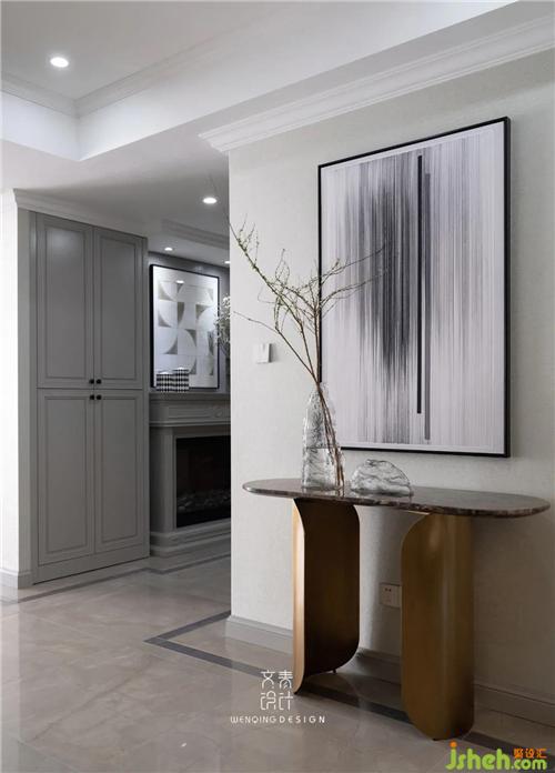 入戶重新砌了薄墻,通過垂直裝飾畫打開對家的第一視角,抽象花瓶與雪柳的禪意結(jié)合,帶入寧靜的居住氛圍。