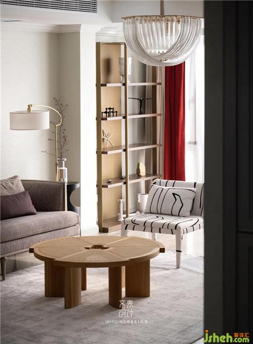簡潔不代表簡單,沙發(fā)背景左右兩側(cè)有兩個博古架,是選購的plan成品,由于尺寸都卡的剛剛好,竟與承重柱意外完美的結(jié)合在一起。
