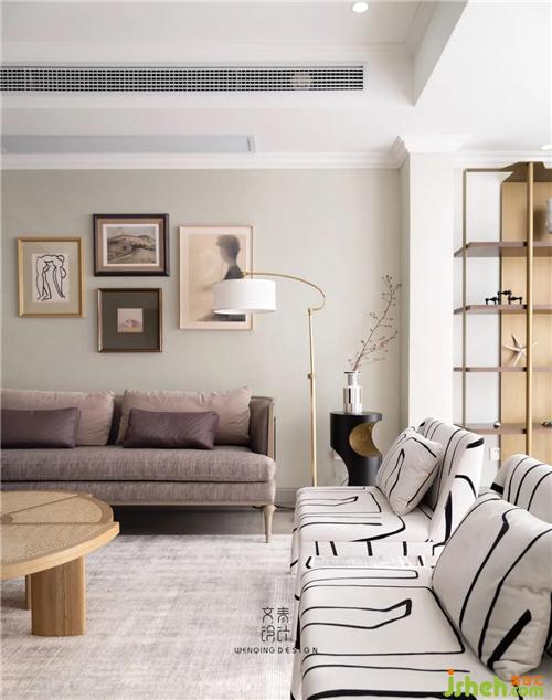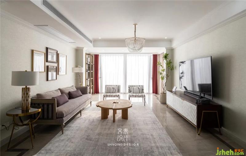 客廳的硬裝比較簡潔傳統(tǒng),因為當初溝通時,業(yè)主比較能接觸中規(guī)中矩的設計。