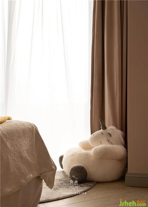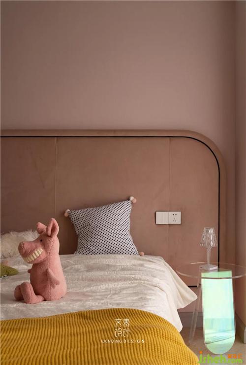 大女兒房是粉色公主房,定制的絲絨床靠背并沒(méi)有落地,而是直接和墻面固定,充分考慮后期衛(wèi)生的打理,杭州裝修設(shè)計(jì)窗邊的獨(dú)角獸懶人沙發(fā),可以供女兒閑暇時(shí)坐在窗邊看看書。
