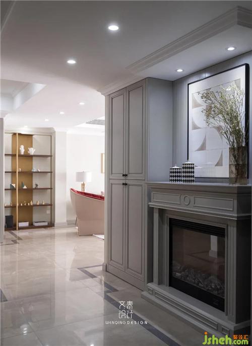 樓梯間作為承接空間的要塞,設(shè)置電子壁爐作為過(guò)道景觀,上下樓也能讓人賞心悅目,壁爐兩側(cè)和樓梯間都做成了儲(chǔ)物空間,杭州裝修設(shè)計(jì)滿足一家人的存儲(chǔ)。