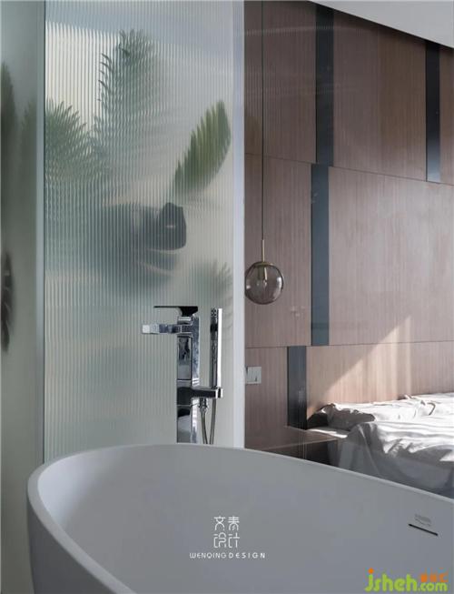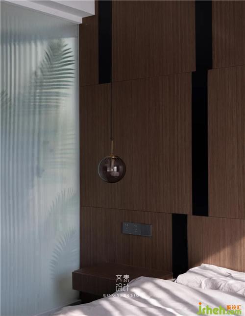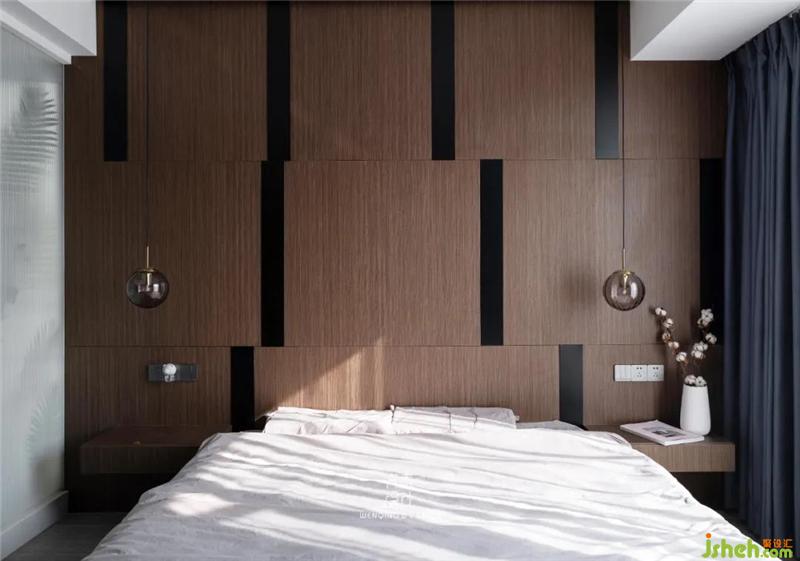 定制床頭柜將空間利用到極致,黑色木飾面線條穿插其中,看似錯亂又整齊的關(guān)系,在這一刻體現(xiàn)的淋漓盡致。