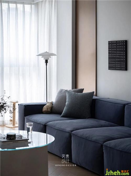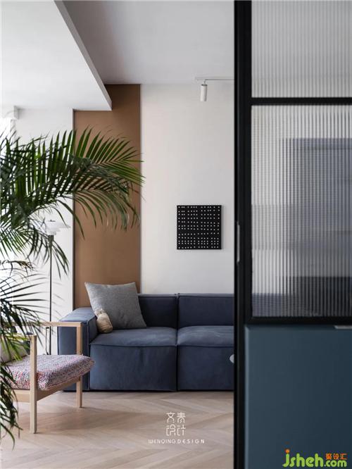 客廳將原本露天陽臺包了進來,一方面是為了減少灰塵,另一方面也是為了增加室內(nèi)的面積。同時貓貓的吃喝拉撒,都布置在遠離生活區(qū)的陽臺上,這樣在家也聞不到一絲異味。
