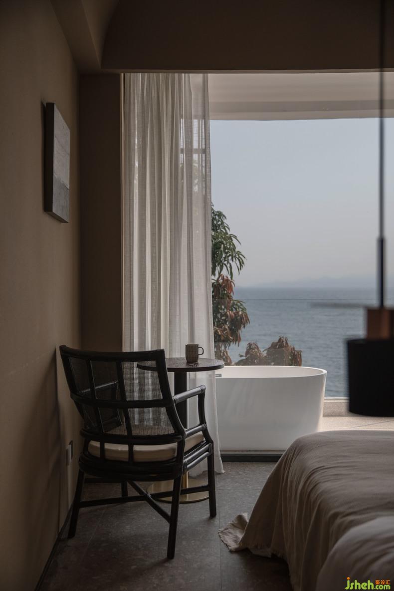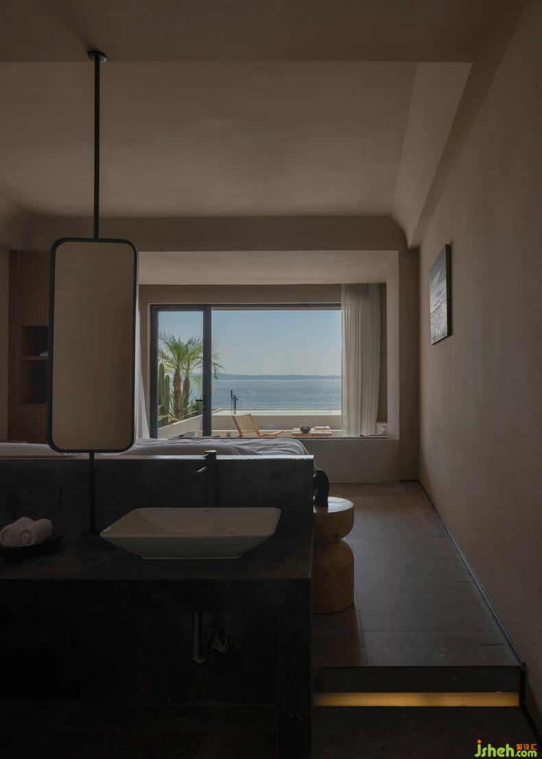 向外延伸的陽(yáng)臺(tái)空間,設(shè)置了一個(gè)巨大的休閑泡池,無(wú)論是拍照還是曬月亮,都是令人心動(dòng)的選擇?!白砗蟛恢煸谒?,滿船清夢(mèng)壓星河”,在漫天星辰下的水波蕩漾里休息片刻,海風(fēng)的安撫與海浪的吟唱,籠罩起輕煙一般的夢(mèng)境。若是遇上下雨的天氣,在除卻淅淅瀝瀝的微雨中,天地間寂靜無(wú)聲的片刻,才會(huì)在孤零零的寧?kù)o和沉思中,觸摸到整個(gè)世界的呼吸和自己的心跳。