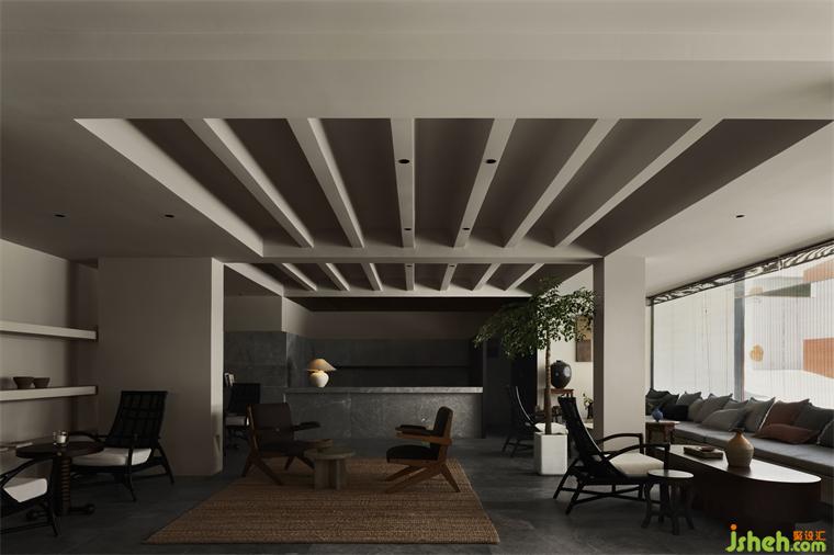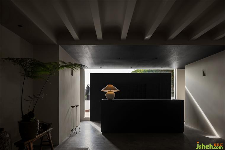 山間建筑的外在有著平和的松弛感,無意于強調(diào)藝術(shù)的筆法,將設(shè)計的亮點謙讓給室內(nèi)。深圳民宿設(shè)計接待空間由正中的門一分為二,應(yīng)承不同人的需求。隱去的功能區(qū)的邊界,由室內(nèi)領(lǐng)域自成的不同氣質(zhì)所承擔(dān),觸不到,卻足夠分明。