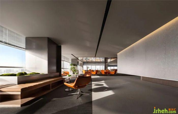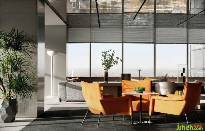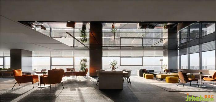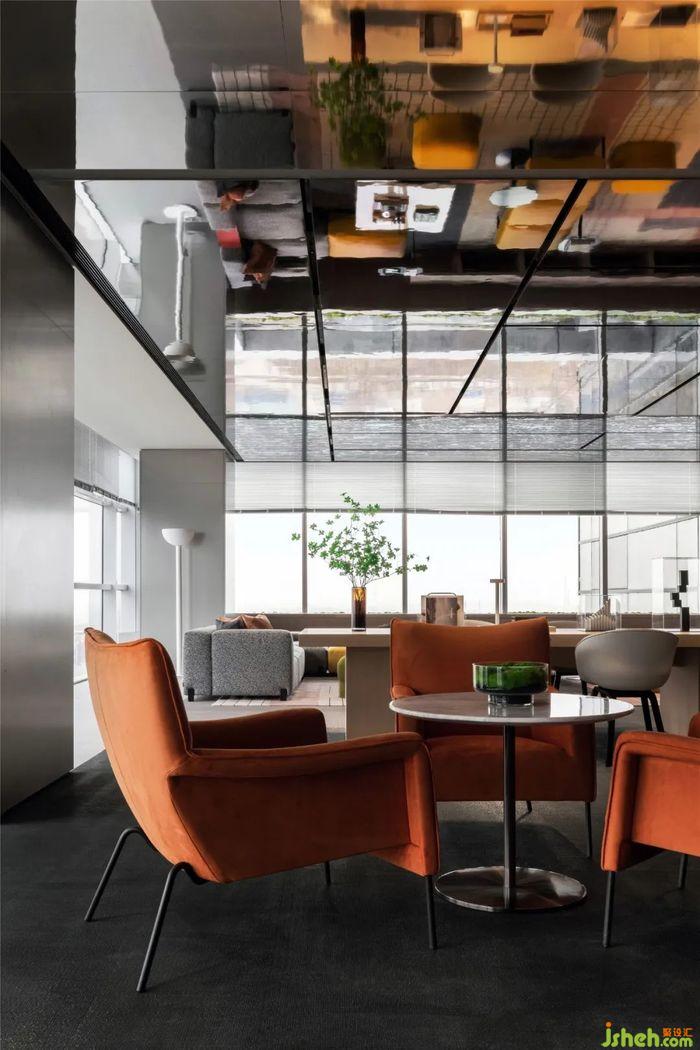 柔軟慵懶的落日黃為這里留著一種居家般溫暖和諧的氛圍,跳躍歡快。立于窗前,鏡面天花配合著開闊的落地窗景觀,見證這座城市的活力,為人們提供了不同的辦公選擇。