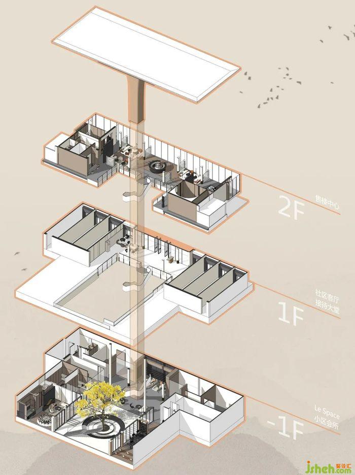 前期作為銷售空間,后期會(huì)所將直接融入城市肌理與公共日常生活,社區(qū)會(huì)所設(shè)計(jì)更加無縫銜接地成為社區(qū)永久共享場域,應(yīng)運(yùn)而生的“LE SPACE”——是一種不同以往的全新的社區(qū)空間。