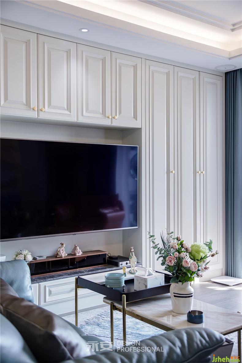 氣氛的烘托在于主題的營造,作為整個空間的交互場所,設(shè)計師在布置客廳的格局時,從地板、墻體到門柜的飾面,首先以外觀上材質(zhì)的關(guān)聯(lián)來規(guī)劃貫通空間