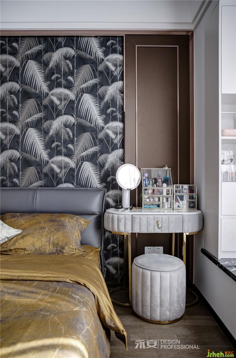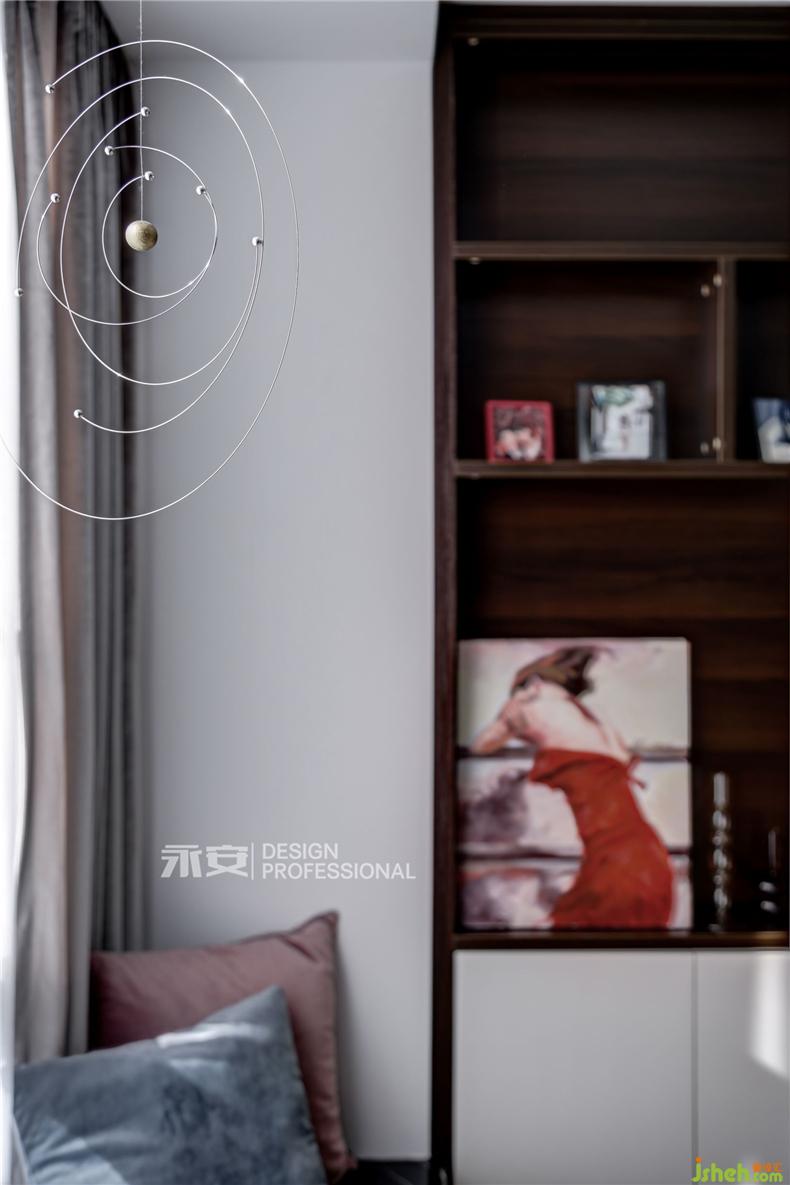 在房間內(nèi)有兩扇飄窗,一扇是視線之窗,另一扇便是床頭的心靈之窗,窗外是黃澄澄的麥田,此時(shí)剛好一陣秋風(fēng)吹過(guò),房間里恐怕已經(jīng)滿是麥香。對(duì)面的床尾,是一幅秋季的森林,從深藍(lán)到淺藍(lán),從金黃到米黃,從下到上,色彩的過(guò)渡,讓人遐想無(wú)窮。這兩幅正在討論著秋天的裝飾畫(huà),便足以令居住者心喜于此