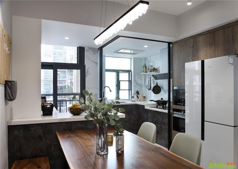 打造進退得宜的廚房空間,敞開時視覺上明亮寬敞,又能在使用時阻隔油