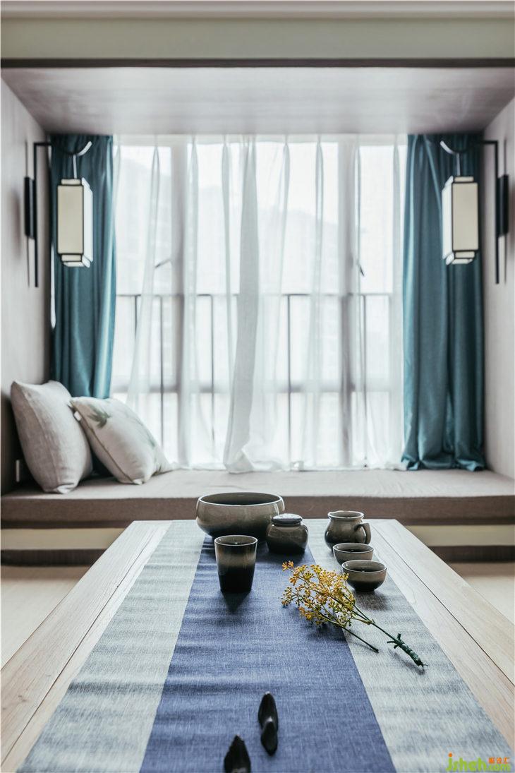 客廳與茶室相銜區(qū)域屏風(fēng)的設(shè)計(jì),實(shí)現(xiàn)了虛與實(shí)的結(jié)合,使兩個(gè)空間互相獨(dú)立又互相接連,從美學(xué)和功能的角度釋放空間潛力,探索空間的界限,打造耐人尋味的氛圍寫照。