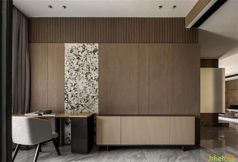 用塊面的材質(zhì)變換,和諧的分割出動線,干凈,通透,沒有一處冗余,東江首府家裝設(shè)計讓書房區(qū)域擁有通透的流動與層次感?。