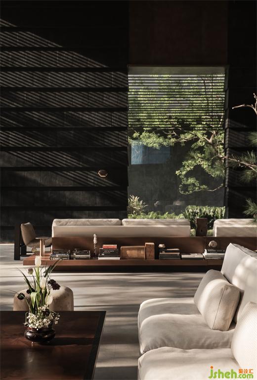 不僅是空間,更是一個(gè)場所。錦宸府與時(shí)間緊密相連,亦似游離其外,只靜靜佇立,星點(diǎn)相連。售樓處設(shè)計(jì)連廊將各個(gè)開放空間交織關(guān)聯(lián),以迎納流動(dòng)變化的姿態(tài)。不妨緩步其間,放慢節(jié)奏,于時(shí)光的流逝中剝離而出,游走于園林與空間之間,親歷那難以瞬時(shí)盡攬的空間豐富與錯(cuò)綜。