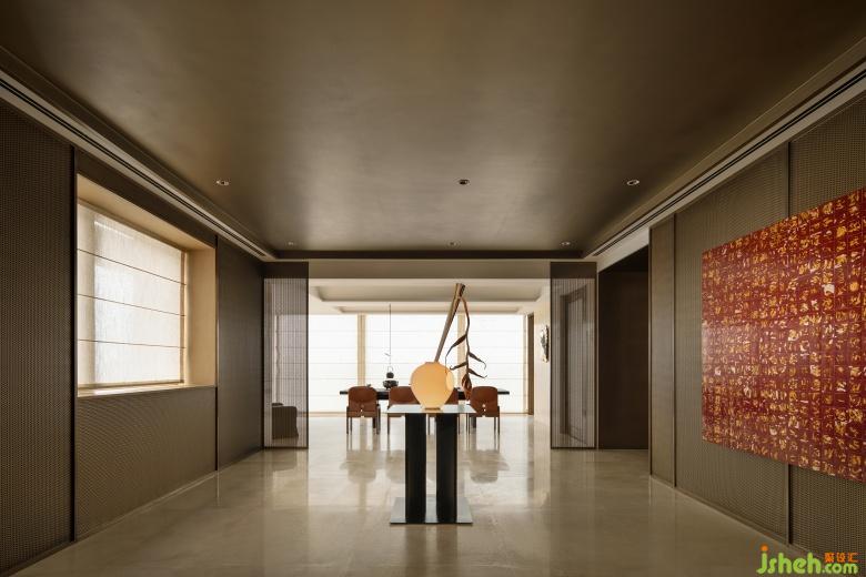 面朝長江,彼岸建筑光影閃爍,總能讓時間不知覺地延長。生活的從容在杯盞間流轉(zhuǎn),餐桌上的紅色大漆盤子與金色餐盤,武漢樣板間設(shè)計以卷軸為靈感的吊燈,透過當代設(shè)計語言,不斷賦予空間摩登與復(fù)古的氣質(zhì)。此情此景,描摹出了居住日常的詩意。