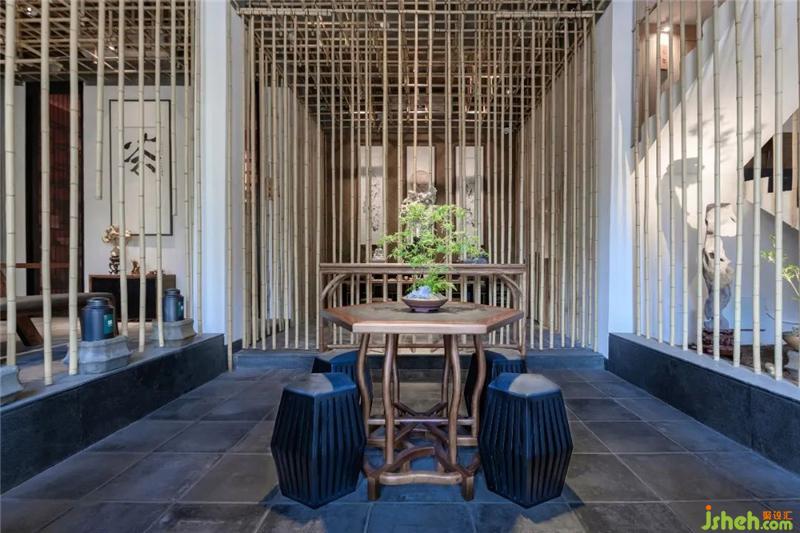 “篽箖”二字,冷僻少見,卻內(nèi)涵深遠(yuǎn)。設(shè)計師取“竹子做的禁苑”之意,重私密自處與自然相融,深信在這一方靜地,可拋去繁冗,安放身心,實現(xiàn)文化深處和生活之上的價值。知其名而品其意,端坐草堂,享竹之樂,會油然而生“我種南窗竹,戢戢已抽萌。坐獲幽林賞,端居無俗情?!钡囊饩场S删郴?,便自然勃發(fā)一種文仕的清風(fēng)傲骨惠州室內(nèi)設(shè)計。