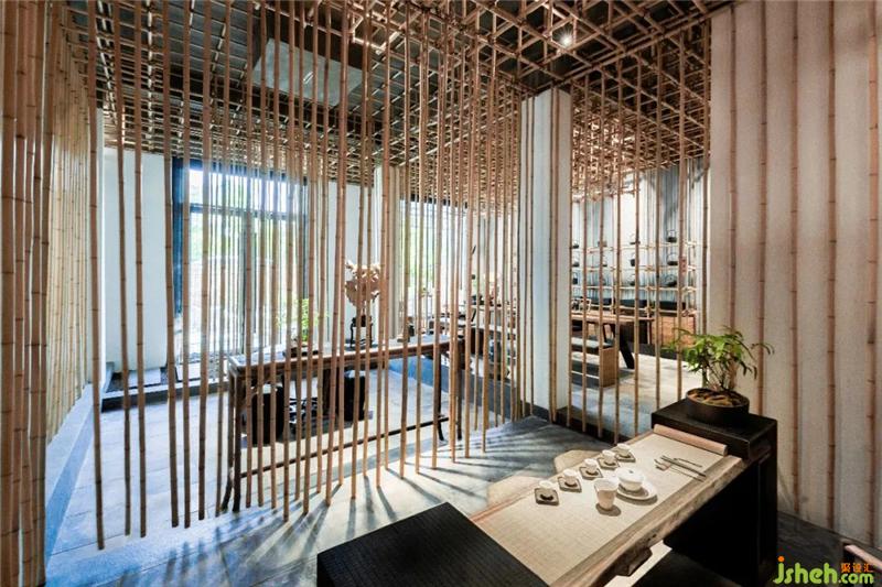 篽箖草堂,取繁華都市一方,卻又隱匿于鬧市之中。在庭院圍合、空間鋪陳間,叢竹點翠、山水相映中,宋韻雅風(fēng),以空靈之形、深邃之態(tài),躍然一竹一藤、一山一水之上。