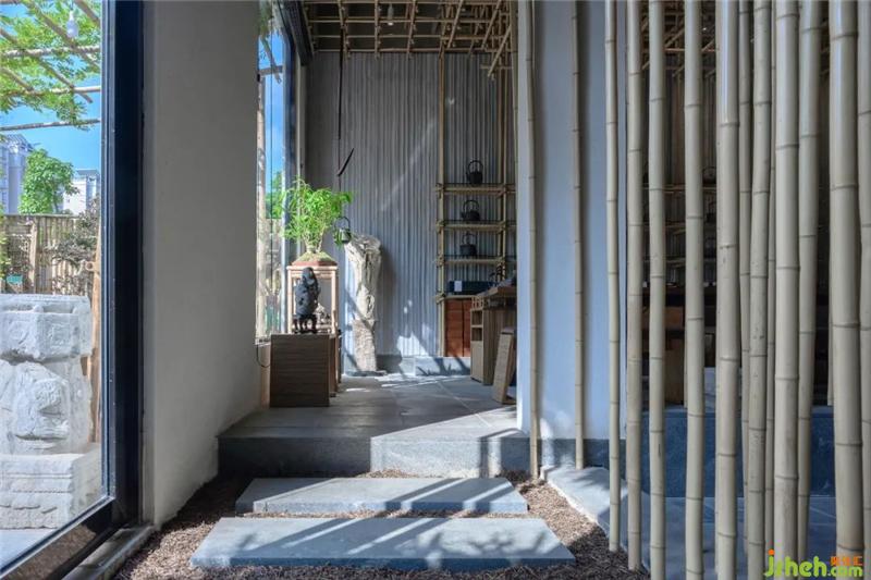 竹篁掩映門輕啟,風(fēng)回小院庭蕪綠。入得庭院,丁步環(huán)設(shè),與細(xì)石軟硬相濟、虛實相和,化為“小橋流水”。院落之內(nèi),丘壑相連、山水環(huán)繞,奇松怪石、淡煙細(xì)水,與紫藤花架隔空對話,相映成趣。院落一隅,獅子林下,竹影橫斜,融于整體,卻又自成一景惠州室內(nèi)設(shè)計。