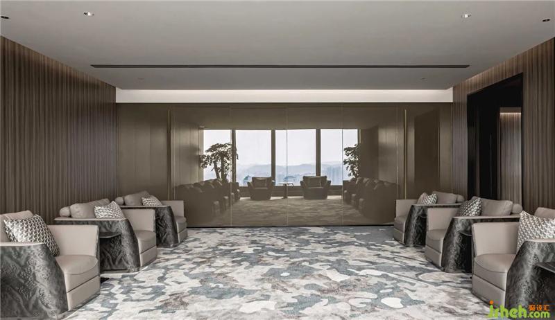 簡潔利落的黑色鋼板則帶給人冷靜的現(xiàn)實感,形成包容而實在的交互空間。冰點藍、穩(wěn)重黑、輕奢白為主、思想灰為輔的色系,加之地毯、軟裝的營造,烘托出似有云層、有河流的豐富自然空間.....