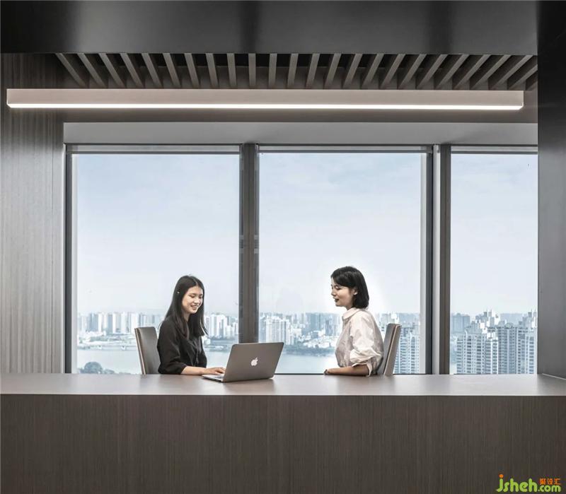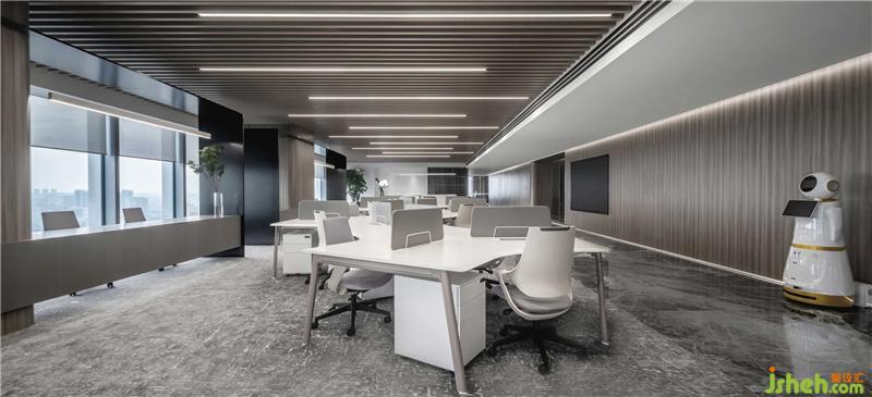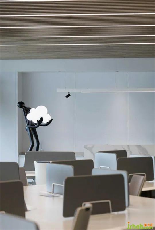 經(jīng)緯交織的大理石,云蒸霞蔚的地毯,幻化出一個有天空、云朵、星辰、河流的靈動空間,身處其中,宛如湖水無聲流淌,延綿無盡,又如云層隨風(fēng)涌動,與窗外天境融為一體惠州辦公空間設(shè)計。