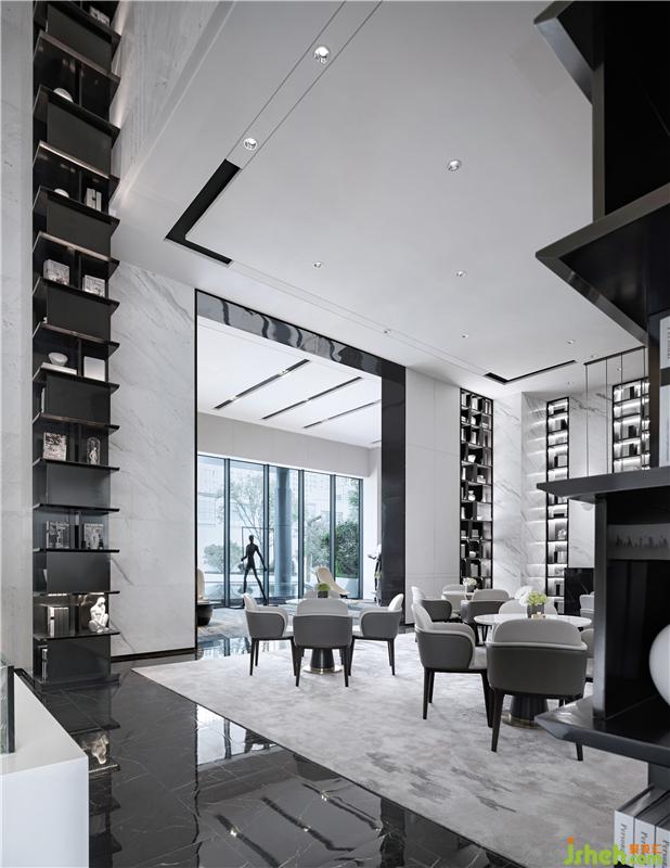 以理性建構(gòu)空間,以藝術(shù)融入感悟??臻g中部為沙盤(pán)區(qū),橫平豎直的布局彰顯大氣,中軸線的設(shè)計(jì)手法,既明確了空間各功能區(qū)域的劃分,又讓空間變的規(guī)整大氣。