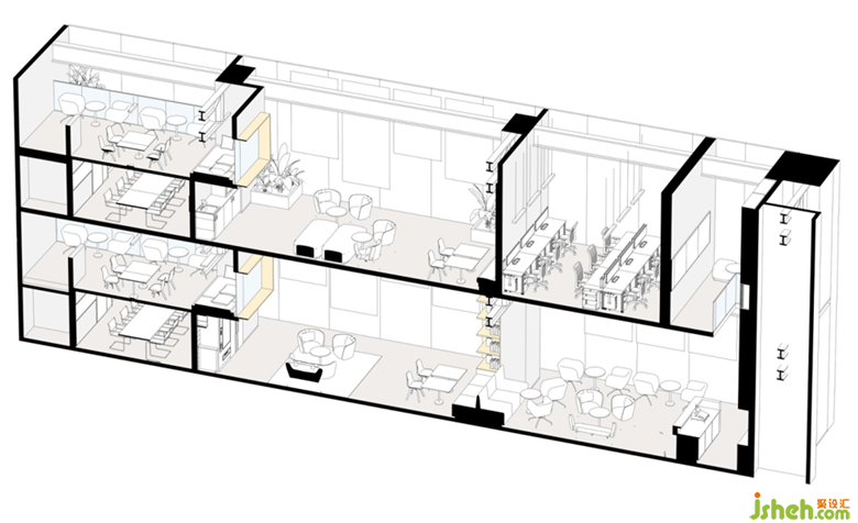 空間中的一抹黃色點(diǎn)綴,融合簡潔的線條符合現(xiàn)代年輕群體的辦公審美??臻g與家具之間的相互搭配,滿足空間多元化的功能需求。就像蒙德里安色彩構(gòu)成的幾何體塊感,模糊了空間界面,促進(jìn)情感交流、思想碰撞。促進(jìn)職業(yè)社交的多元新型辦公文化。辦公室設(shè)計(jì)