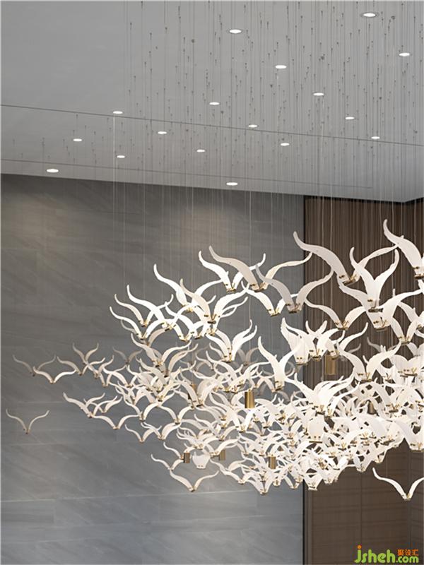 銀翅紛飛,虛實(shí)游騁,定格其間,或?yàn)楦≡?,或?yàn)橛螣?,滇池的影子化作空間的情感語(yǔ)素,動(dòng)靜結(jié)合的藝術(shù)張力,演繹出詩(shī)人范汭所云“滇池池上云悠悠”的清幽澹逸。裝修公司