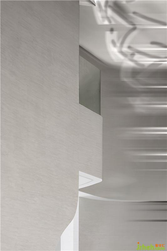 過(guò)道視覺(jué)延續(xù)水的形態(tài),素雅簡(jiǎn)潔的墻面延續(xù)著水流的方向,激蕩出一片片層迭起伏的水面,自由流淌出更為悠遠(yuǎn)的生命意涵。