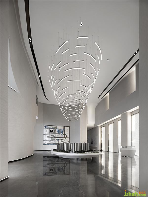 沙盤空間,從河流中汲取靈感,將自然的節(jié)奏、流動(dòng)、旋轉(zhuǎn)形態(tài)和變化表現(xiàn)在這個(gè)充滿活力的流光璀璨之上。