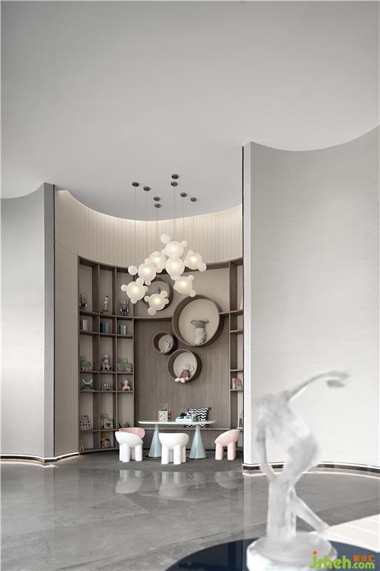 兒童空間結(jié)合了空間墻體的圓潤弧度,形成了一個獨立的樂園,猶如帶著培育生命的姿態(tài),創(chuàng)造出夢幻純真的藝術(shù)殿堂,是隨光奔走的自由,亦是生命綻放的張揚。
