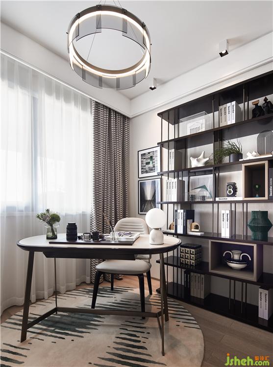 獨立書房,硬朗的金屬材質(zhì),彰顯時尚的質(zhì)感,理性的線條勾勒出前衛(wèi)的格調(diào),樣板房裝修設計簡約穩(wěn)重的黑白灰仿佛鋼琴的琴鍵,一杯咖啡,一本書,一片溫暖的陽光,奏響悠閑慢生活。